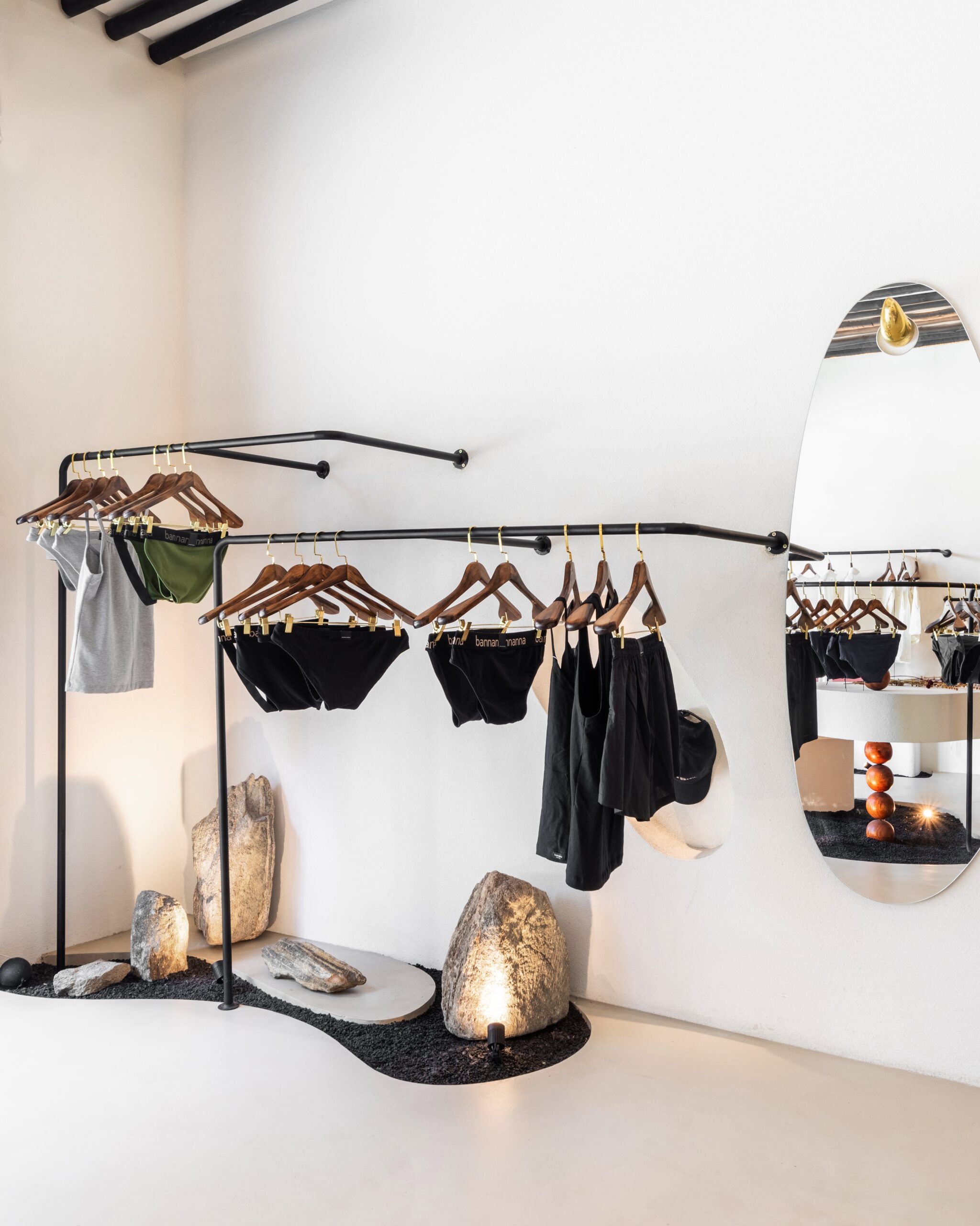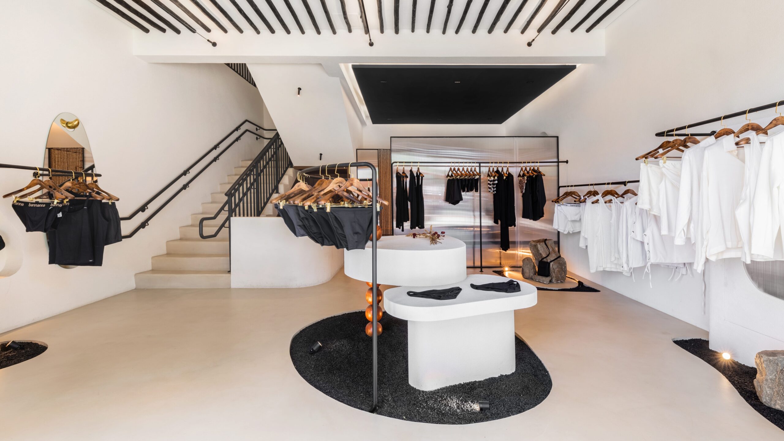 Driven by a minimalist concept, the design allows the clothing to take visual precedence. Every architectural gesture supports this focus, resulting in a clean, well-composed environment where simplicity is enriched by material texture and form. Bannanna’s urban and relaxed identity is expressed through a careful balance of neutral colors, organic shapes, and tactile surfaces that elevate the shopping experience without overwhelming it.