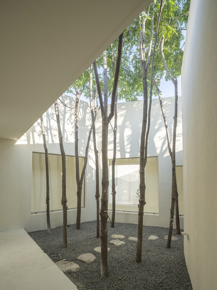 While the hierarchical structure common to vernacular residences has been dissolved through the spiral logic, the resulting layout fosters an open and fluid sense of spatial freedom. Visitors navigate organically between rooms, courtyards, and terraces, experiencing a dynamic interplay of privacy, transparency, and visual connection. The spiral’s continuous movement transforms the building into a living organism, accommodating both functional needs and aesthetic exploration.