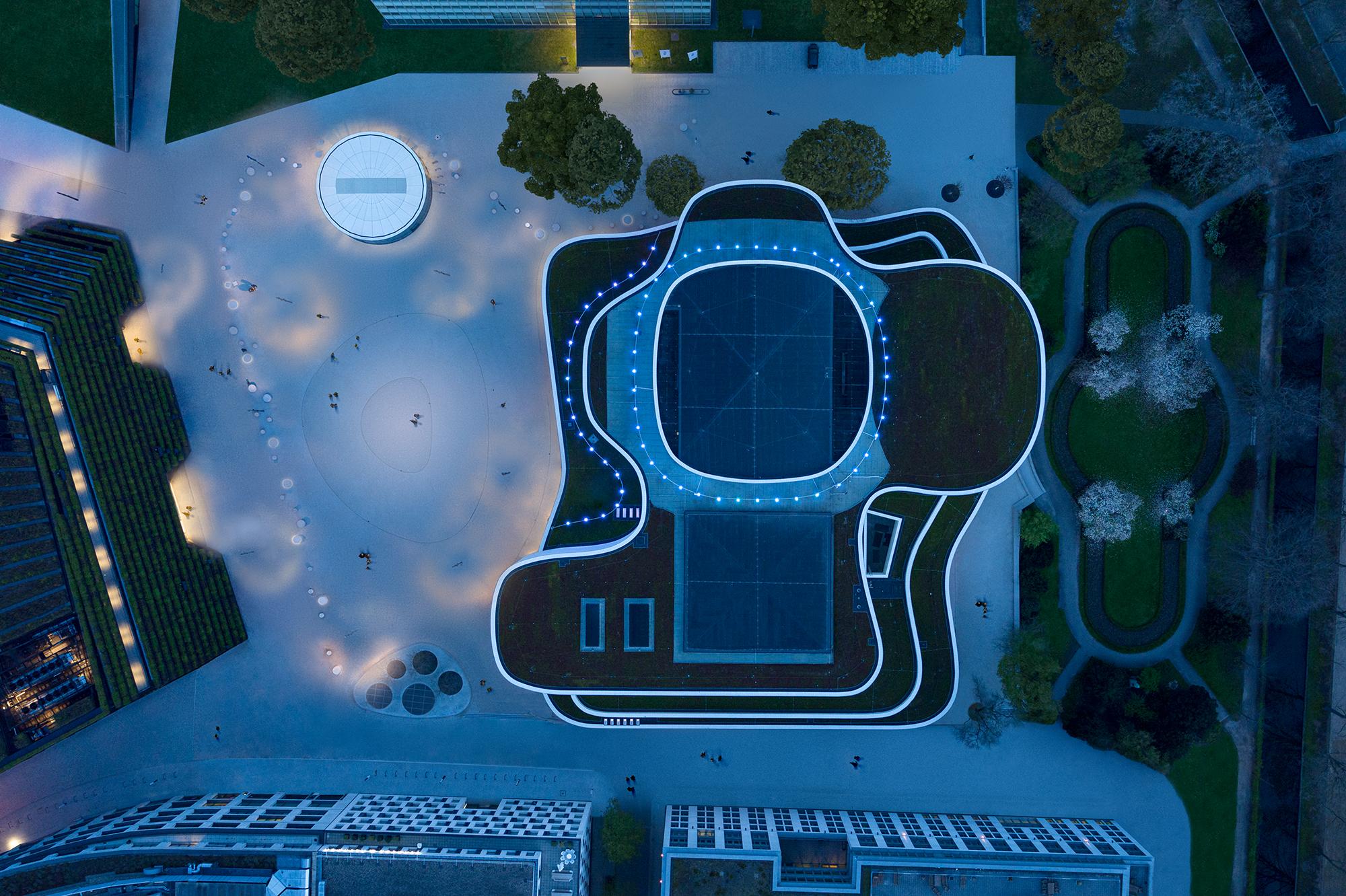 Additionally, the immediate exterior environment of the theater will undergo a redesign. This involves renewing the delivery zone and the artists’ entrance, including a concrete visual screen separating these areas. The redesign aims to blend the theater’s surroundings with the adjacent Gustaf-Gründgens-Platz, incorporating new floor finishes, planting concepts, and lighting installations. The intention is to extend this design aesthetic to the nearby Hofgarten public park, creating a cohesive and integrated environment that enhances the theater’s presence in the cityscape.