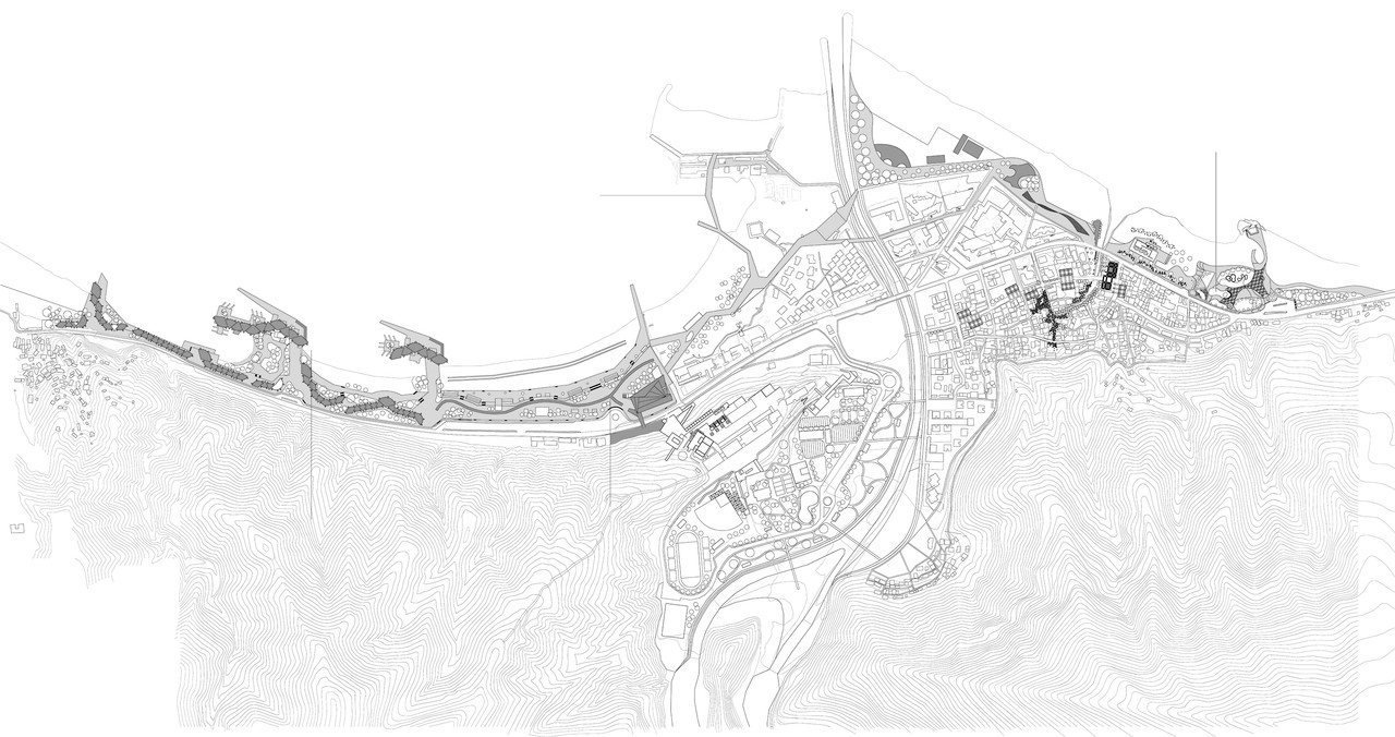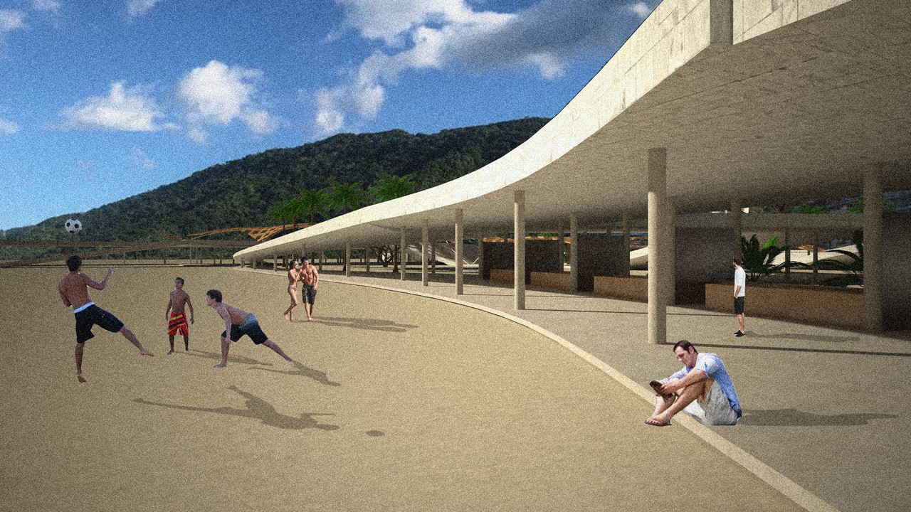 In context of a master plan for the development of the community of Camurí Grande, a strategical and systematic proposal is presented for the long extension of beaches in this coast. Making use of transversal and longitudinal conditions, as well as using typologies from the spot as a starting point along with inspiration from Venezuelan culture and vernacular elements, the project is centered on the creation of building programs that contribute to local economy, tourism and sense of identity, solving issues along the 3.5 kilometers of beach that make up the sector, weaving the sea with the town and the mountain to give a new facade of the city from the Caribbean Sea.