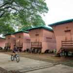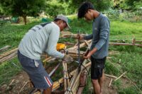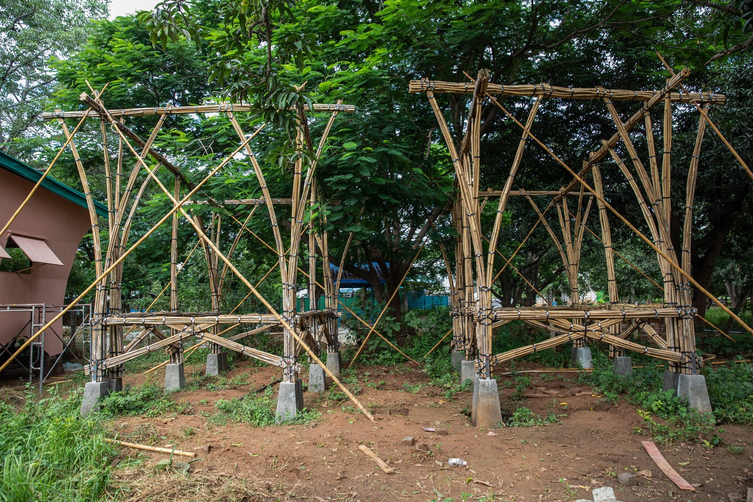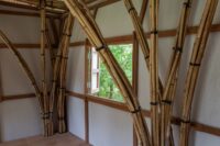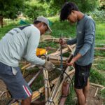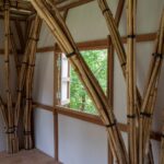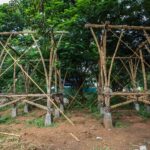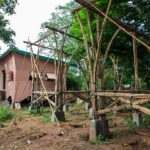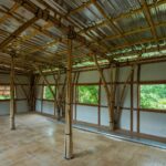The structural system relies on small-diameter bamboo culms standardized and fabricated with jigs. The modular frames allow rapid assembly, enabling a complete house to be erected in one week at a cost of approximately USD 1,000–1,300. Early logistical challenges, including military checkpoints that seized prebuilt frames, led to an adaptive approach: transporting only jigs and raw bamboo and fabricating frames on-site. In remote regions, small-scale mobile treatment tanks process local bamboo species, ensuring timely and secure construction under complex conditions.