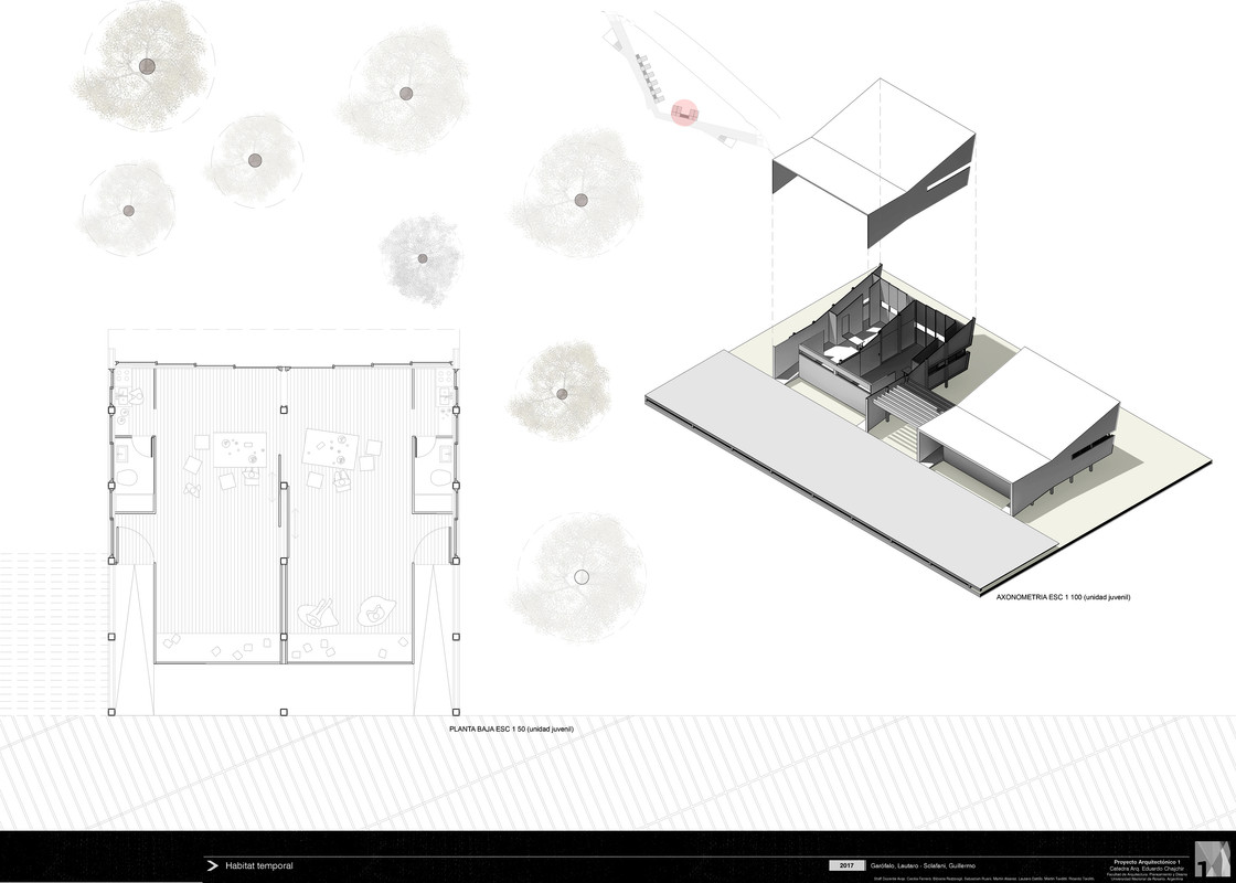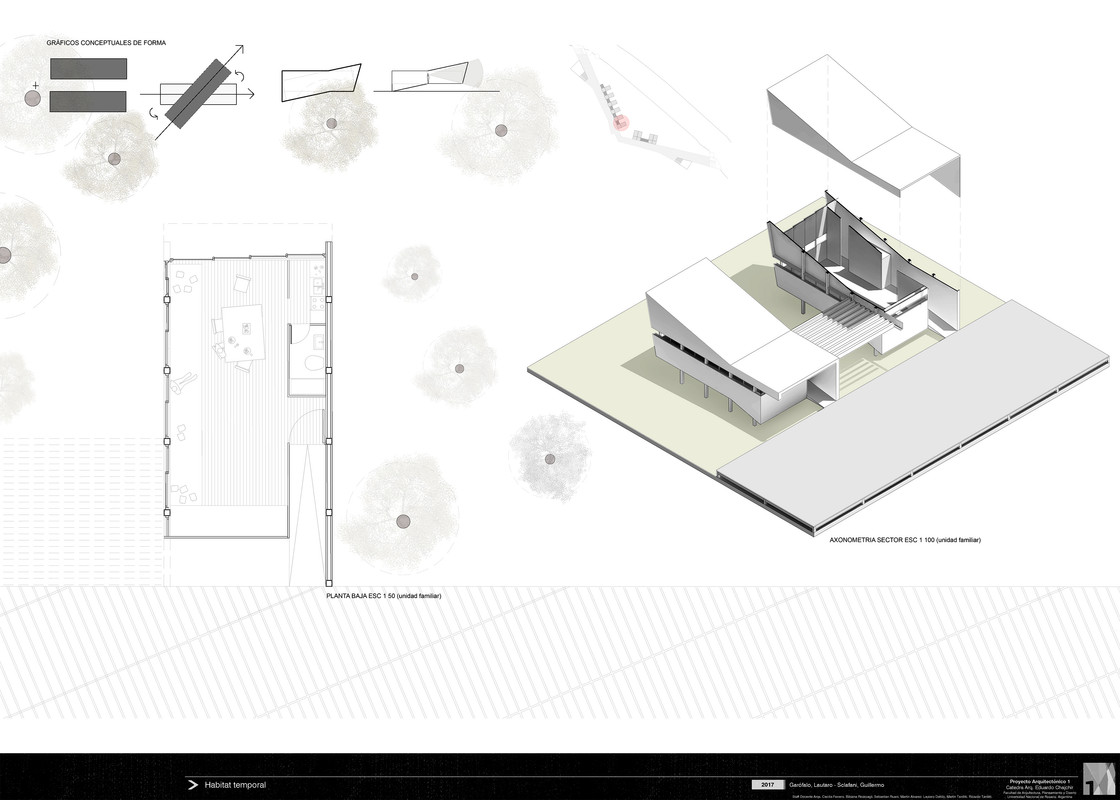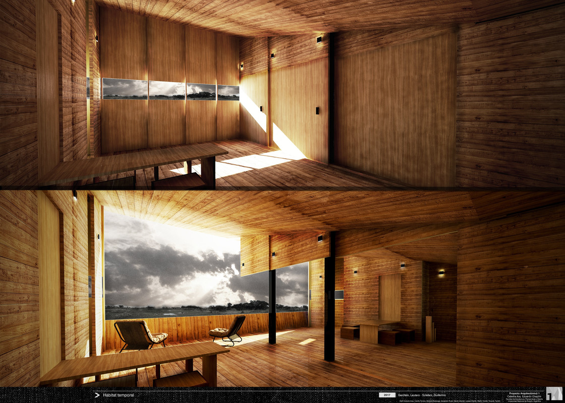 At the time of this cabin projecting, our first objective was to generate a reccorido through a single piece, where planes are raised that generate viewpoints that result in covered spaces, where we host the different programs that correspond to public uses.