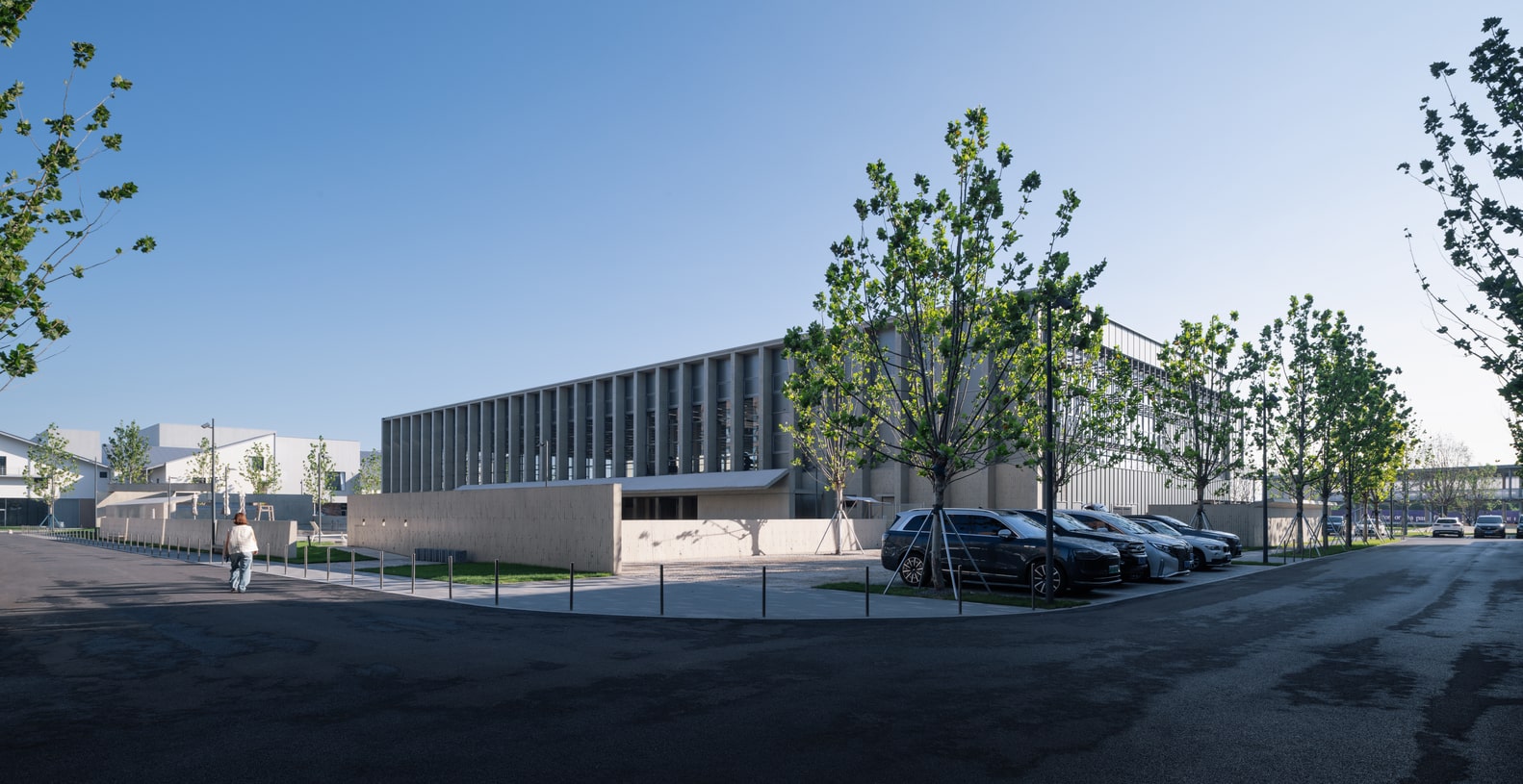 The choice of materials—exposed concrete, glass, and steel—creates an aesthetic balance between industrial robustness and contemporary lightness. While the exposed frame celebrates its construction logic, the glass façade introduces transparency, reflecting the surrounding landscape and inviting public curiosity. The building’s raw material palette ties it visually to the area’s industrial heritage while projecting a new sense of civic refinement.