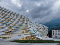 This metaphorical “iceberg” form is not merely aesthetic; it also enhances energy efficiency and thermal comfort. By optimizing orientation, solar gain, and material performance, the building’s geometry ensures reduced energy consumption and improved daylight quality throughout the interiors. The result is an architectural identity that merges local context with forward-looking design principles—an exemplar of sustainable architecture in Alpine regions.